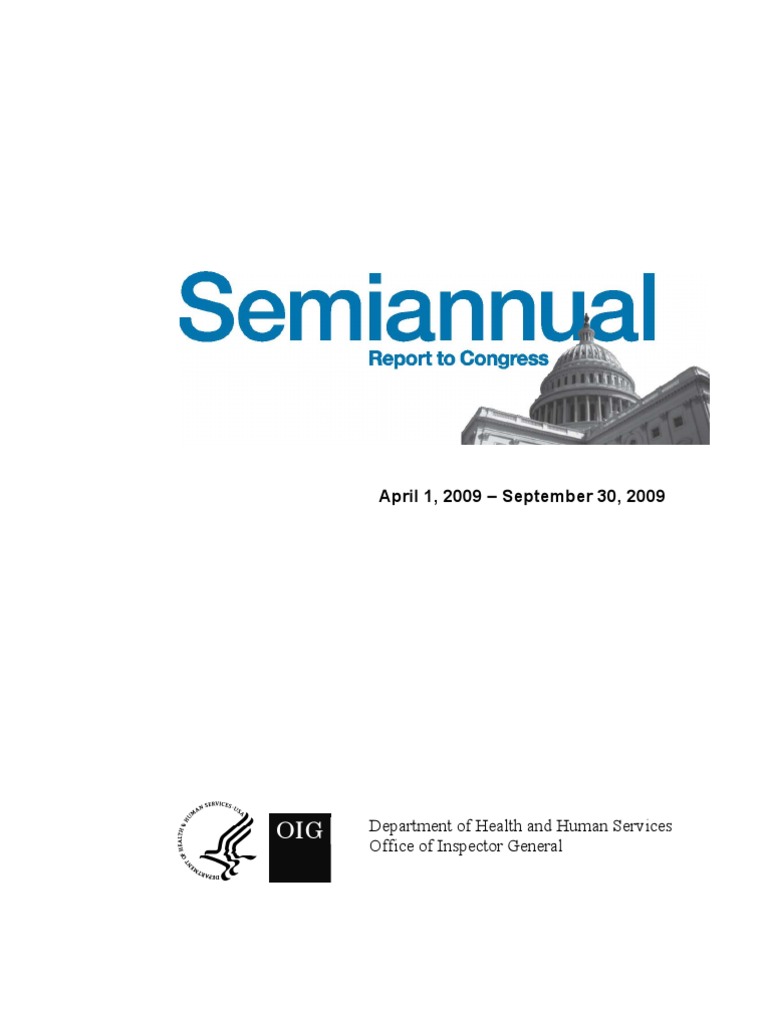 This report, submitted to Congress pursuant to the Inspector General Act of 1978, as amended, summarizes the activities of the Office of Inspector General (OIG), Department of Health and Human Services (HHS), for the 6 month period ending September 30, 2009.