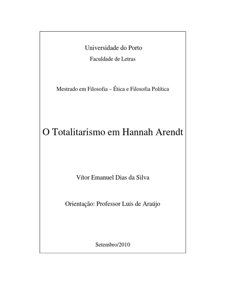 totalitrio assim como do mal que dele resulta, procurando destacar as consequncias que