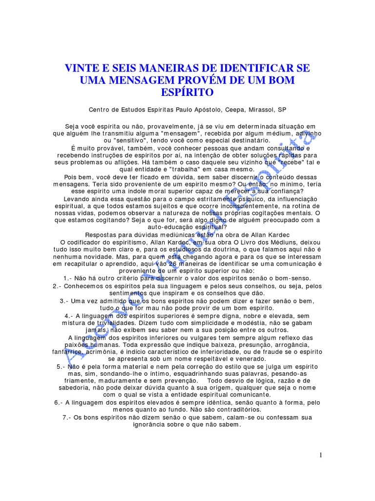 esprito se diz esclarecido.