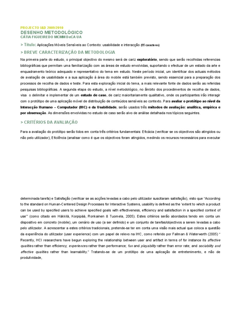 > Título: Aplicações Móveis Sensíveis ao Contexto: usabilidade e interacção (65 caracteres)
