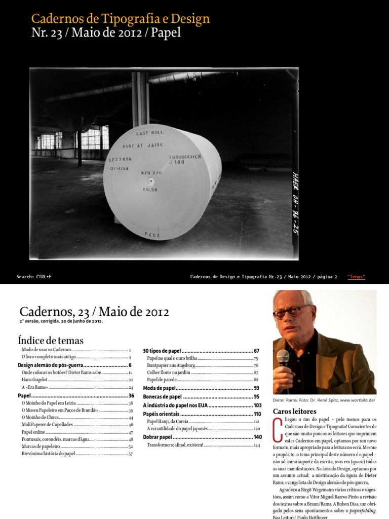 Cadernos de Design e Tipografia Nr.23 / Maio 2012 / pgina 3 Temas Search: CTRL+F