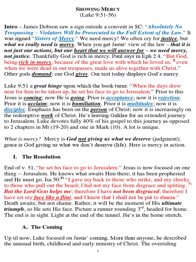 What is mercy? Mercy is God not giving us what we deserve (judgment);