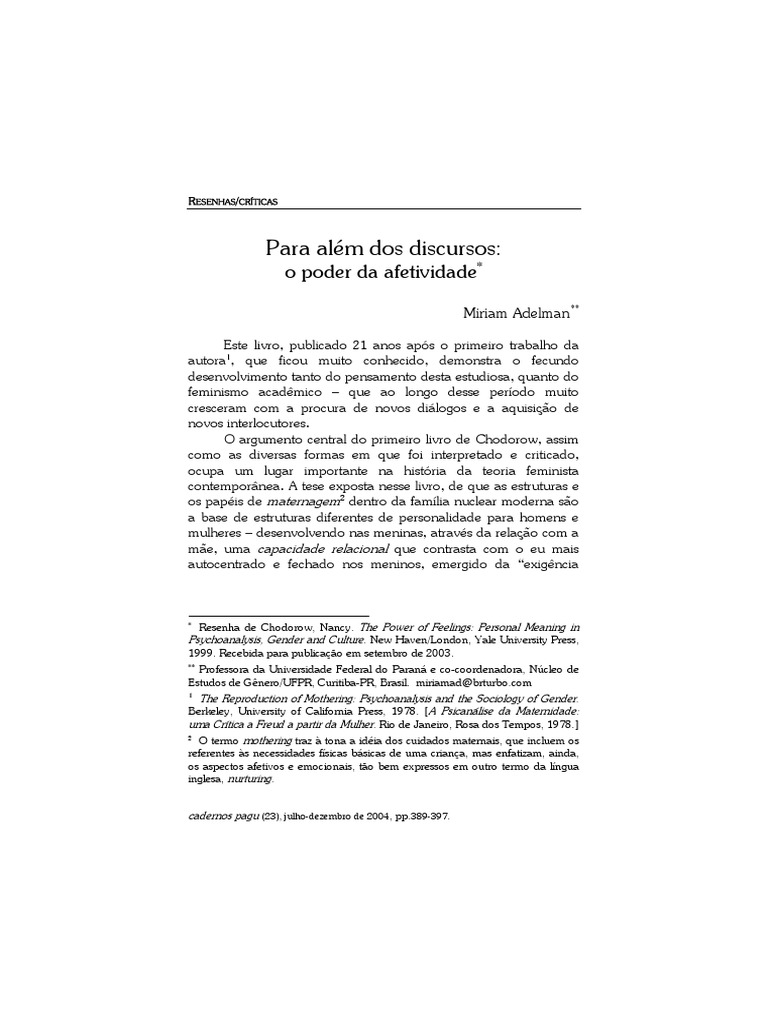 Resenha de Chodorow, Nancy. The Power of Feelings: Personal Meaning in