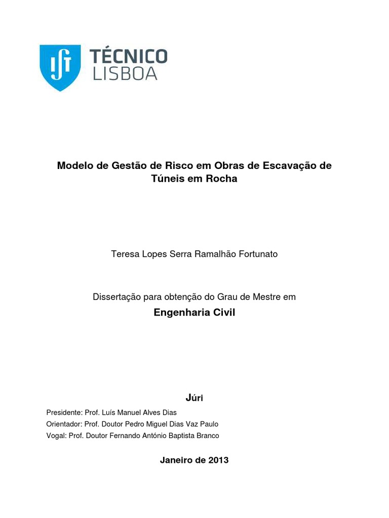 (Mestrado em Engenharia Civil) Instituto Superior Tcnico IST, Lisboa.