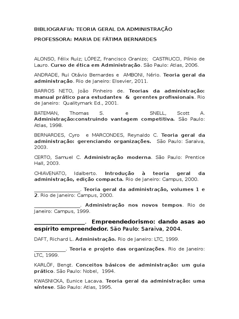 BIBLIOGRAFIA: TEORIA GERAL DA ADMINISTRAO