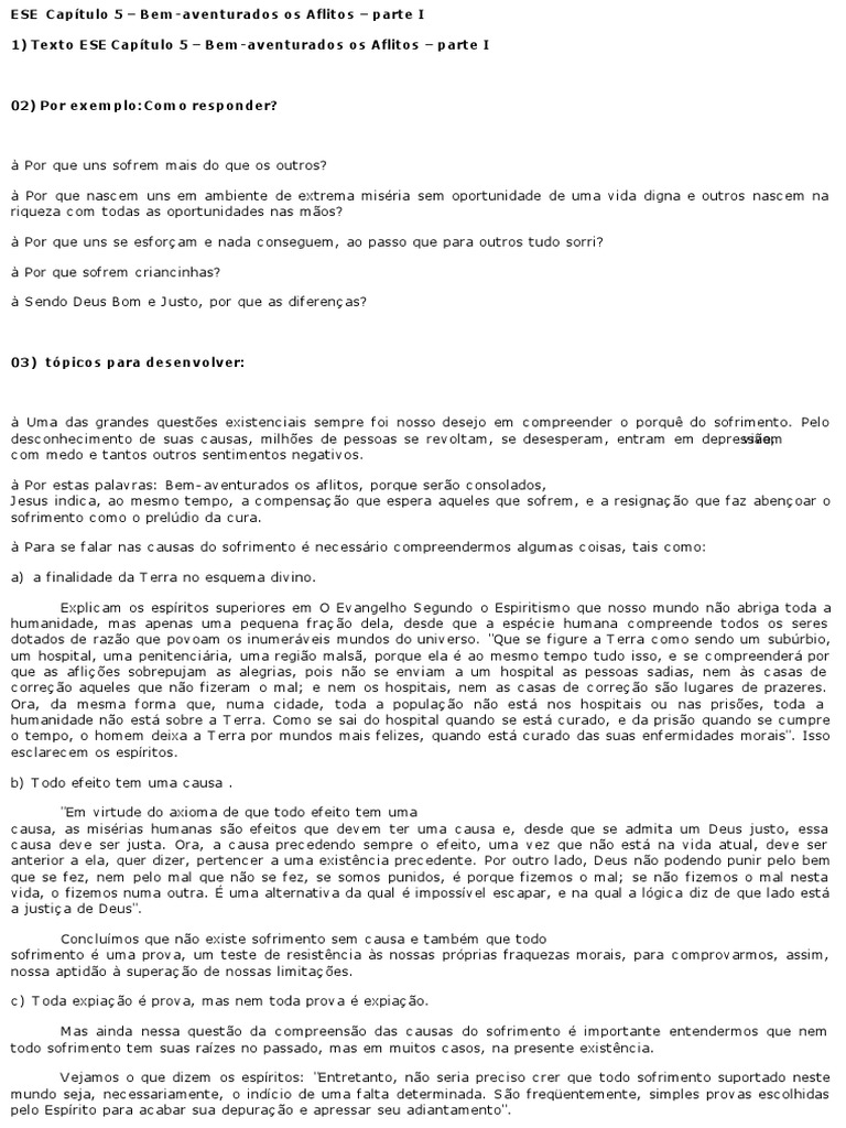 Assim, temos que no c aptulo do Evangelho Bem Aventurados os Aflitos h a abrangnc ia ampla de nossas