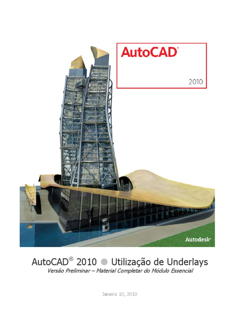 Por definição padrão, o ponto de inserção de um arquivo é 0,0,0, seu fator de escala é 1, e o seu ângulo de rotação é de 0. Podemos utilizar os comandos de edição geral, tais como move, scale, rotate, mirror, array, e assim por diante. Depois de selecionar um arquivo underlay, você pode alterá- lo utilizando as opções da paleta Properties.