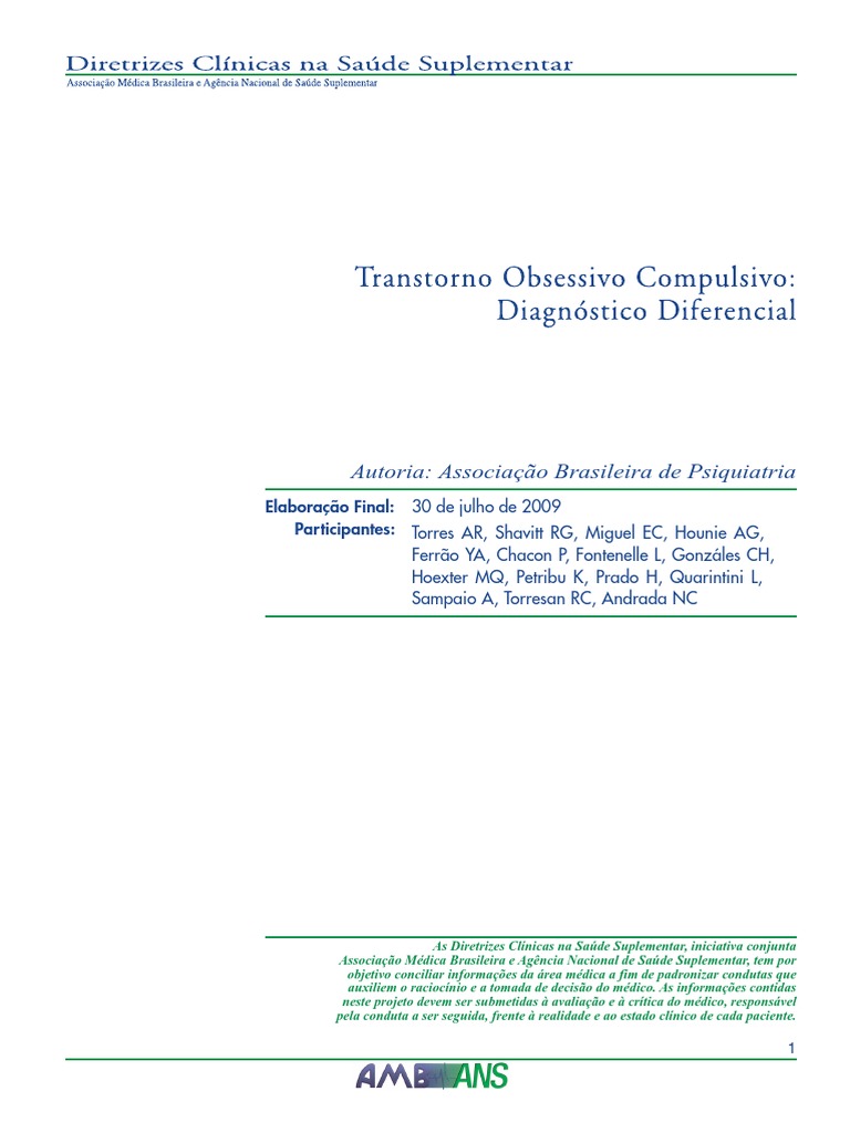 outros transtornos psiquiátricos além do TOC, como nas depressões, demências, hipocondria, transtorno dismórfico corporal ou transtornos alimentares. Assim, é importante fazer uma avaliação clínica cuidadosa para se estabelecer o diagnóstico primário do paciente. Deve-se também fazer o diferencial de compulsões com os comportamentos repetitivos de portadores de transtornos do controle de impulsos 10 (D).