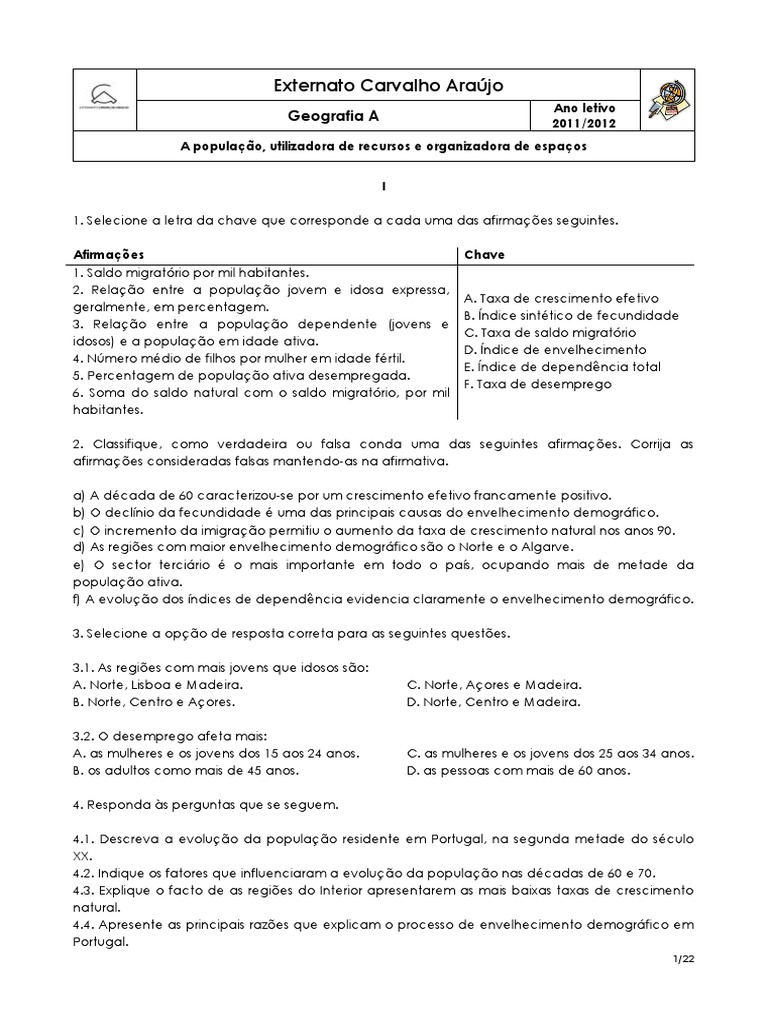 3. Em Portugal constata-se um duplo envelhecimento da populao. Esta afirmao verdadeira