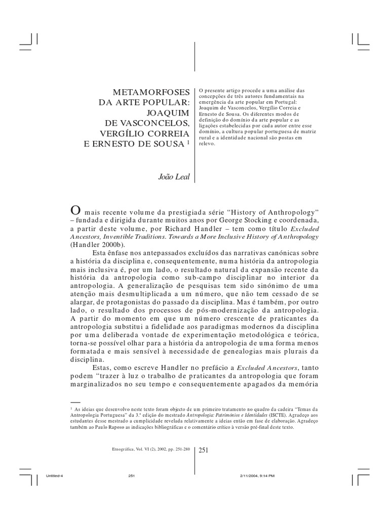 LEAL, Joo, 1995, Imagens Contrastadas do Povo: Cultura Popular e Identidade Nacional na Antropologia