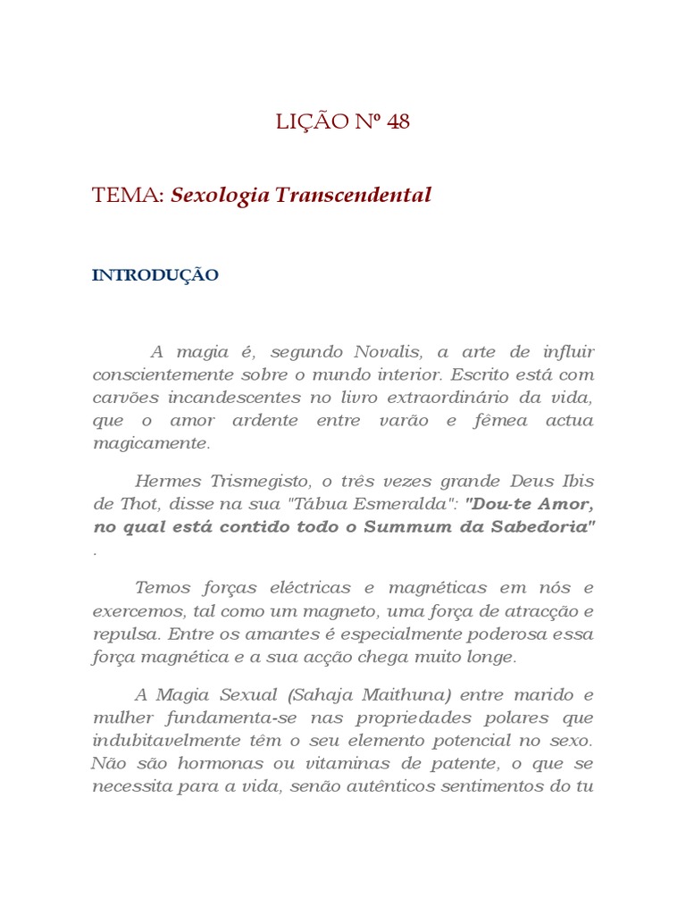 A Magia Sexual (Sahaja Maithuna) entre marido e mulher fundamenta-se nas propriedades polares que indubitavelmente têm o seu elemento potencial no sexo. Não são hormonas ou vitaminas de patente, o que se necessita para a vida, senão autênticos sentimentos do tu