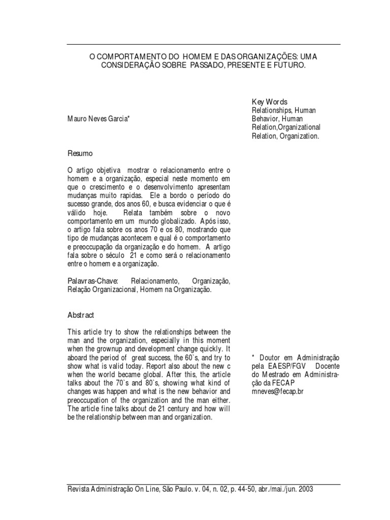 e preoccupao da organizao e do homem. A artigo