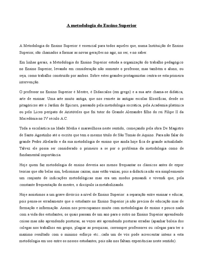 A Metodologia do Ensino Superior essencial para todos aqueles que, numa Instituio de Ensino