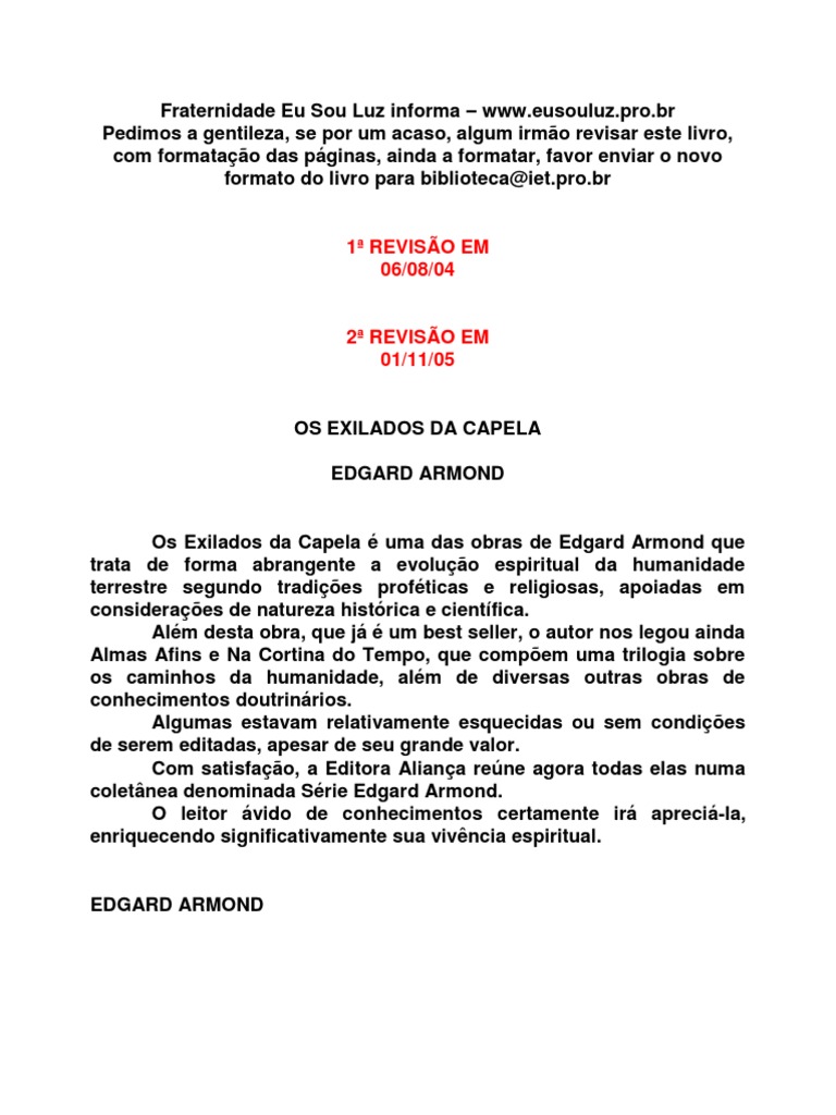 Pedimos a gentileza, se por um acaso, algum irmo revisar este livro,
