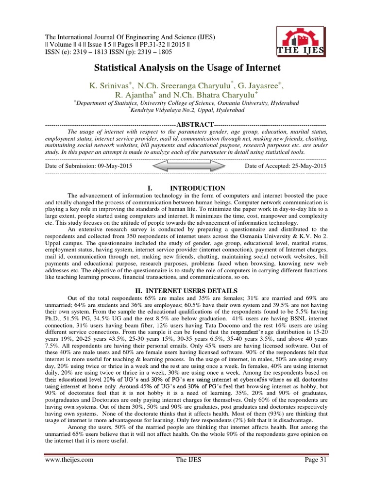 --------------------------------------------------------------- ABSTRACT-----------------------------------------------------The usage of internet with respect to the parameters gender, age group, education, marital status,