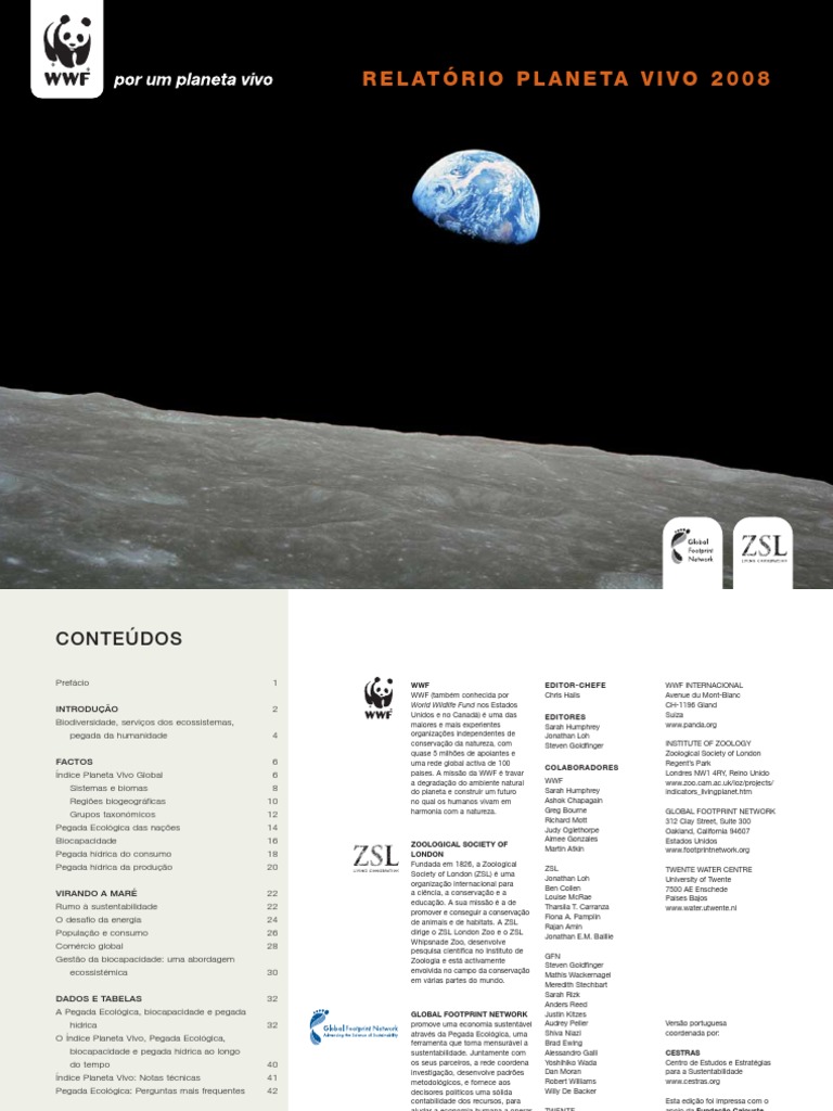 espécies, incluindo a humana, é grande, mas Planeta Vivo permitiu analisar as tendências a escassez de água, a decrescente vai aumentar como resultado das alterações