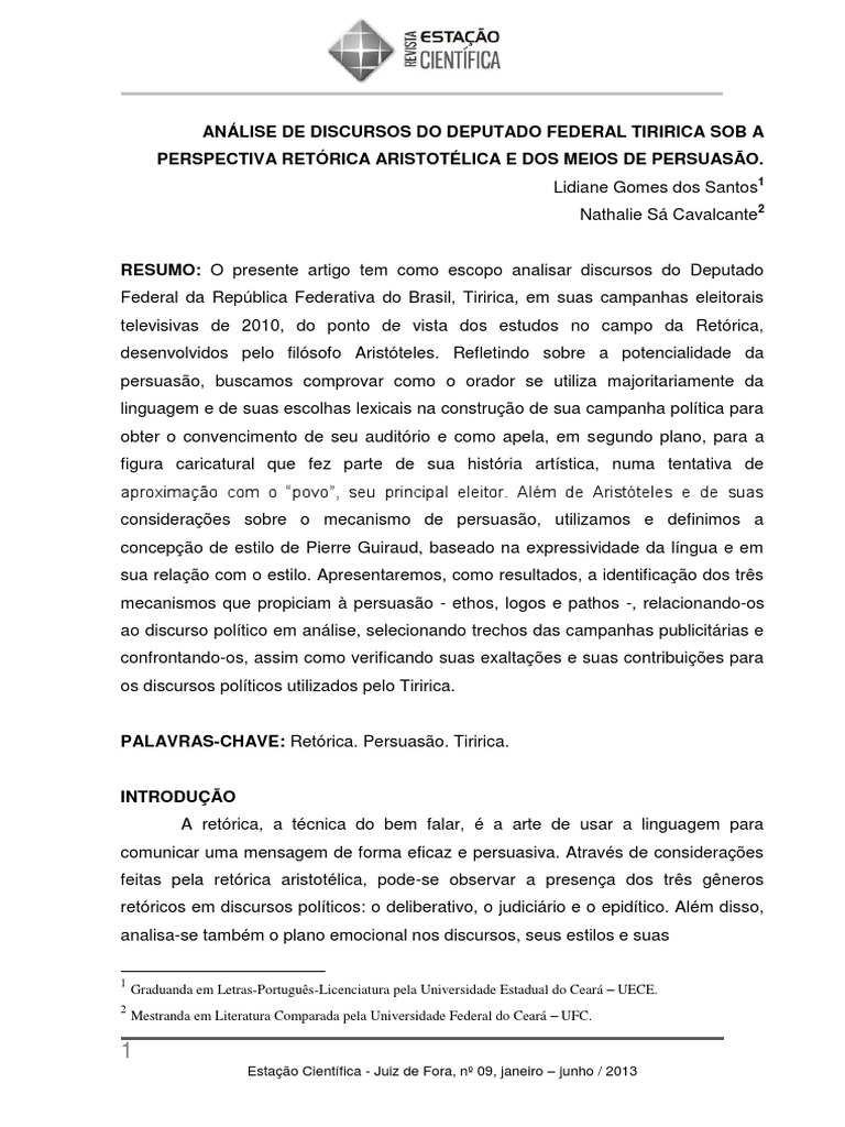 KEYWORDS: Rhetorical. Persuasion. Tiririca.