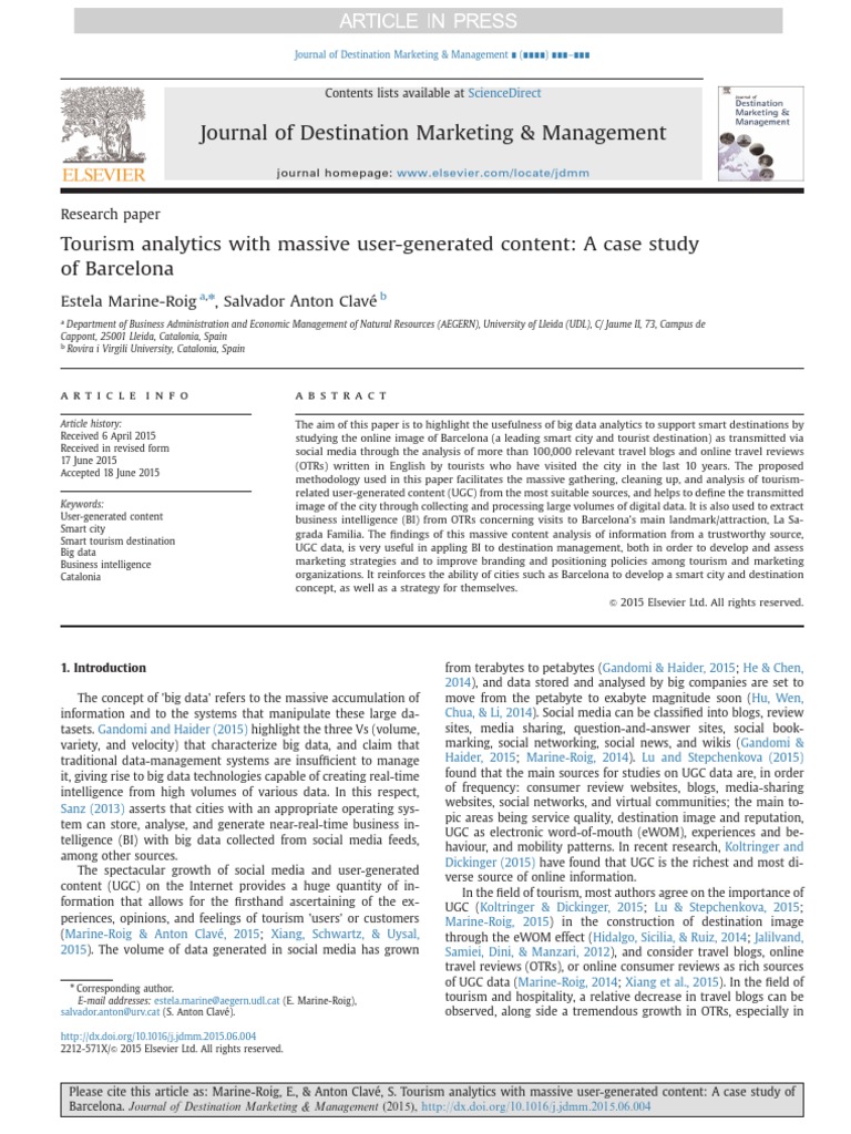 E. Marine-Roig, S. Anton Clav / Journal of Destination Marketing & Management ()