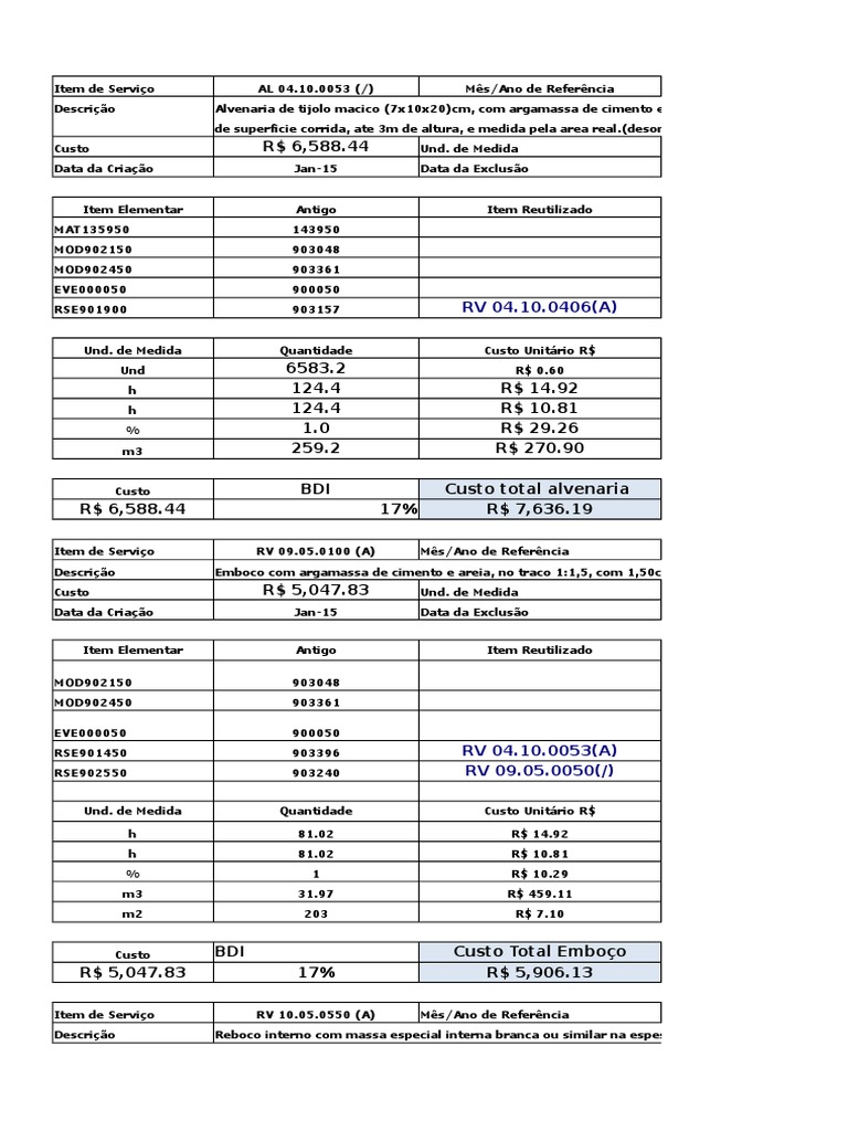 de superficie corrida, ate 3m de altura, e medida pela area real.(desonerado)