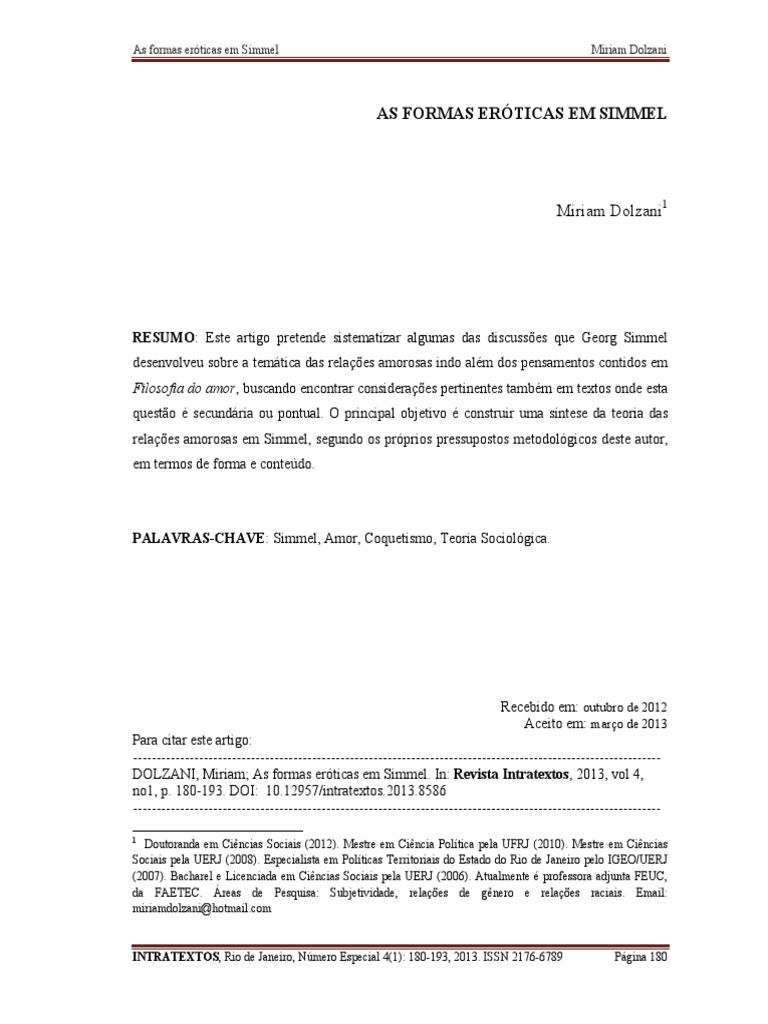 contedo amoroso na teoria de Simmel. As relaes erticas podem se dar de vrias formas,