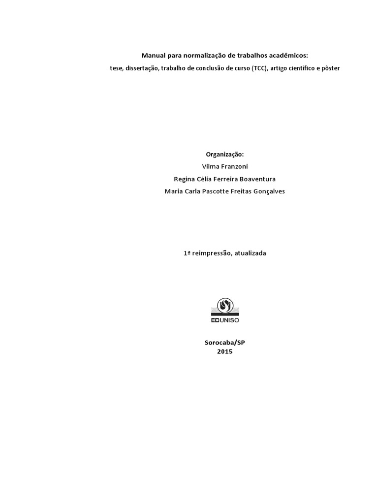 e a publicar este novo ttulo: Manual para Normalizao de Trabalhos Acadmicos: Tese,