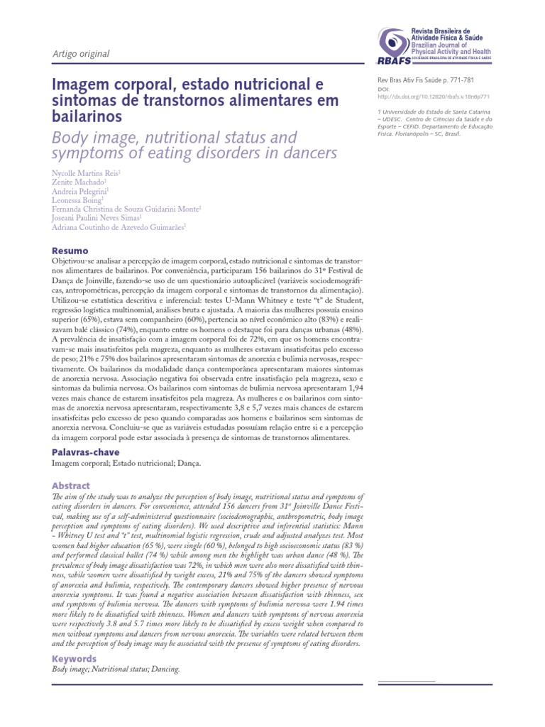 6. Haas NA, Garcia ACD, Bertoletti J. Imagem corporal e bailarinas profissionais. Rev Bras Med