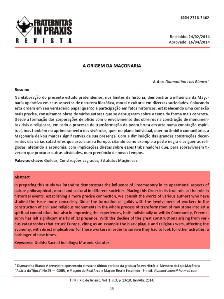 BLANCO, D. L. A ORIGEM DA MAONARIA