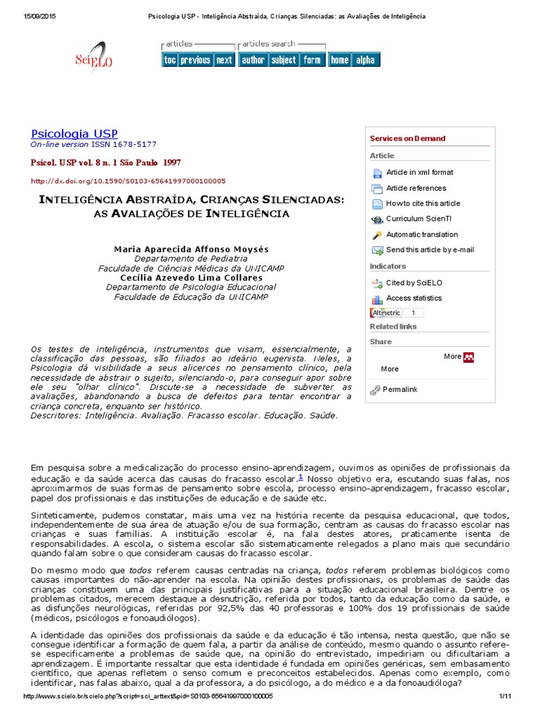 PsicologiaUSPIntelignciaAbstrada,CrianasSilenciadas:asAvaliaesdeInteligncia