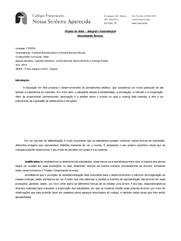 observaes que eles podero fazer em passeios pelos espaos arborizados do colgio, e tambm pelas obras que lhes sero