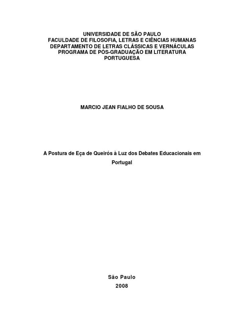 A Postura de Ea de Queirs Luz dos Debates Educacionais em Portugal
