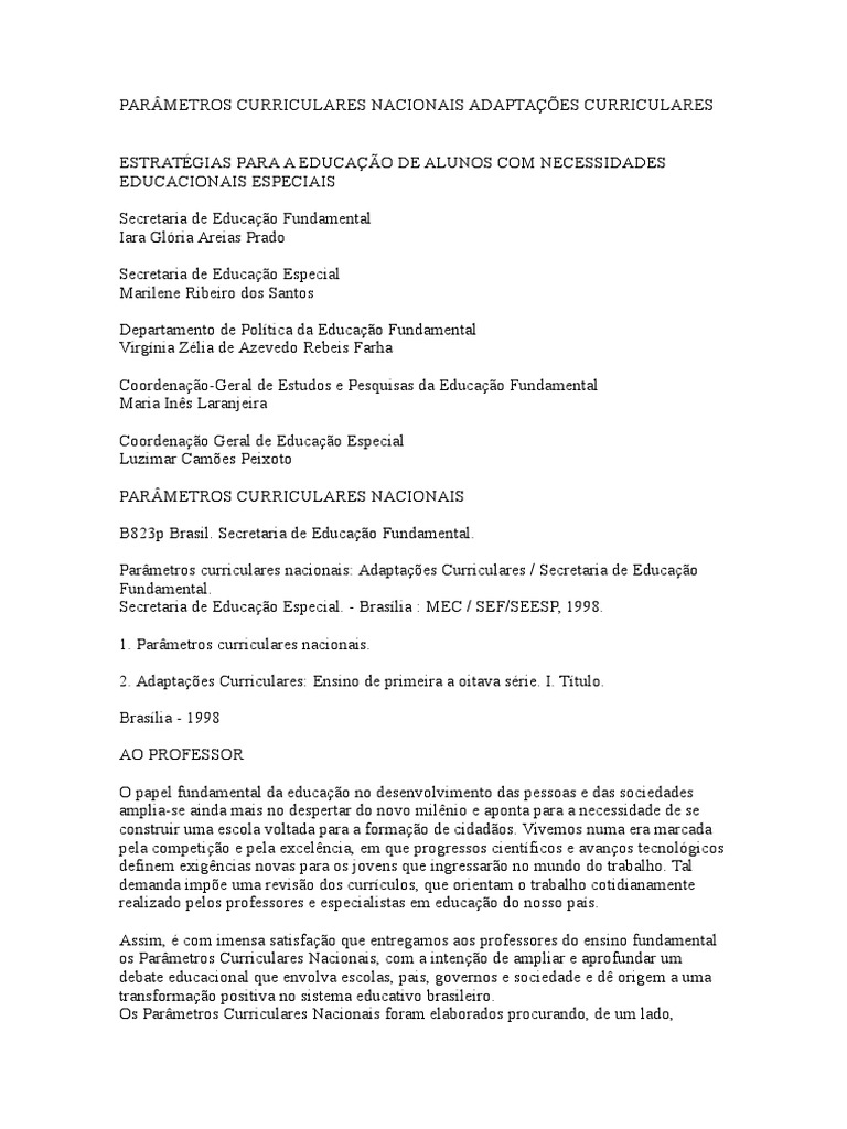 PARMETROS CURRICULARES NACIONAIS ADAPTAES CURRICULARES