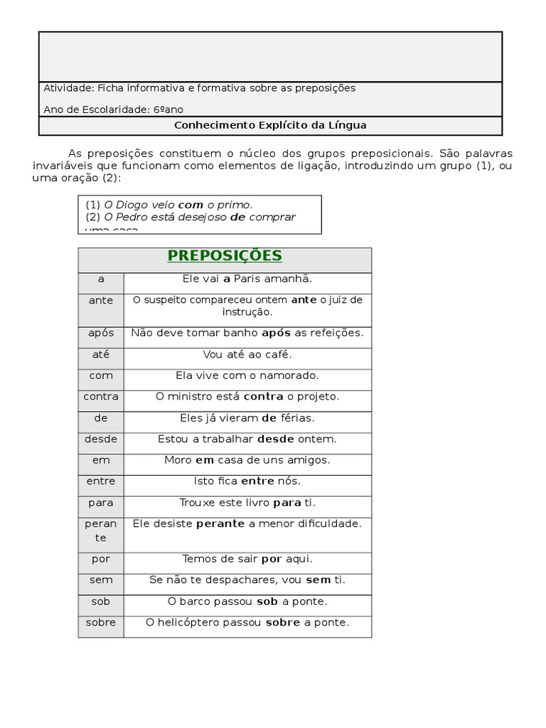 1- Complete as frases seguintes com as preposies adequadas, fazendo
