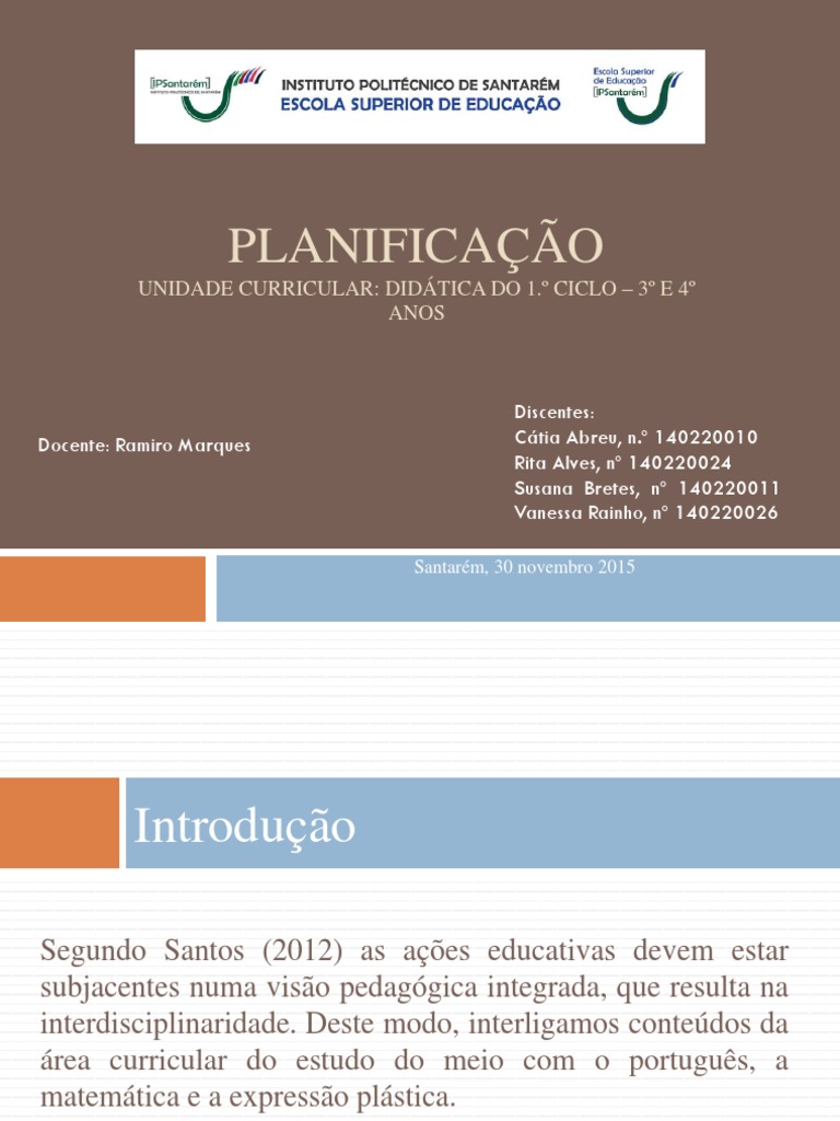 Santos, E.M.B.M. (2012). Prática de Ensino Supervisionada em Ensino do 1 º ciclo do Ensino Básico , Relatório de Estágio para a obtenção do grau de Mestre. Escola Superior de Educação de Bragança, Instituto Politécnico de Bragança, Bragança, Portugal.