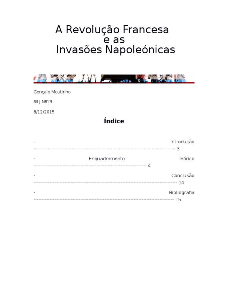 Neste trabalho abordei os assuntos Revoluo Francesa e Invases