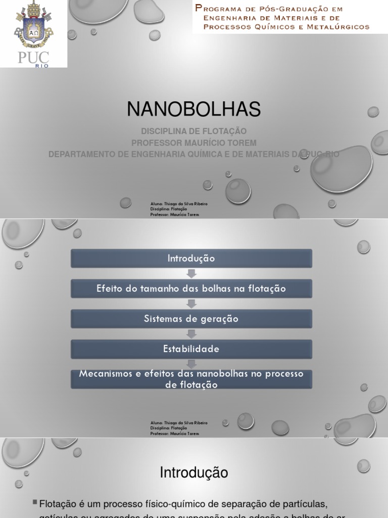 Mecanismos e efeitos das nanobolhas no processo