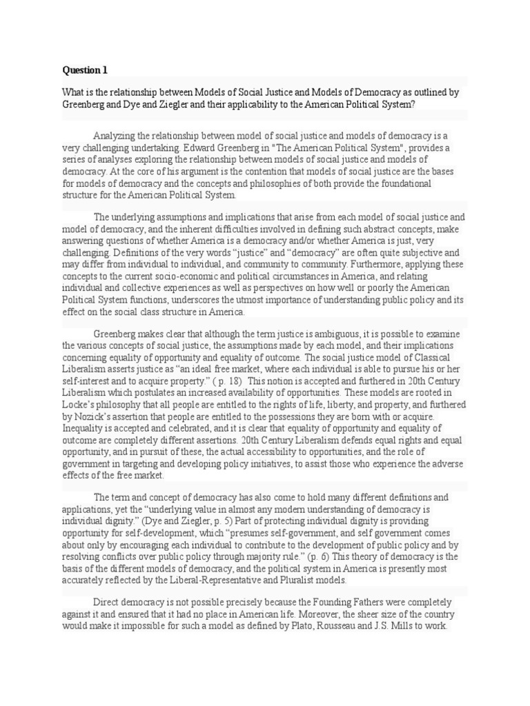 democracy. At the core of his argument is the contention that models of social justice are the bases
