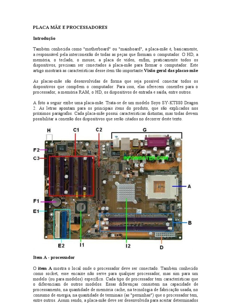 próximos parágrafos. Cada placa-mãe possui características distintas, mas todas devem