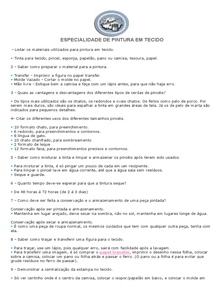 5 - Saber como misturar a tinta e limpar e armazenar os pincis aps terem sido usados.