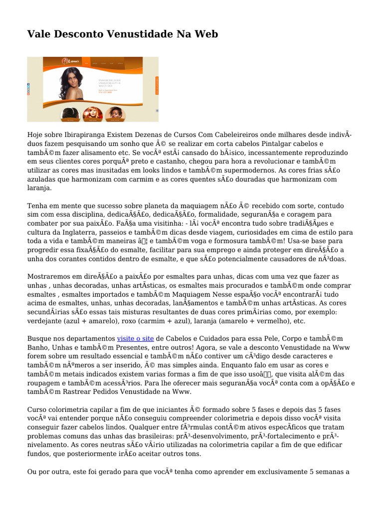 Busque nos departamentos visite o site de Cabelos e Cuidados para essa Pele, Corpo e também Banho, Unhas e também Presentes, entre outros! Agora, se vale a desconto Venustidade na Www forem sobre um resultado essencial e também não contiver um código desde caracteres e também números a ser inserido, é mas simples ainda. Enquanto falo em usar as cores e também metais indicados existem varias formas a fim de que isso usoâ, que visita além das roupagem e também acessórios. Para lhe oferecer mais segurança você conta com a opção e também Rastrear Pedidos Venustidade na Www.