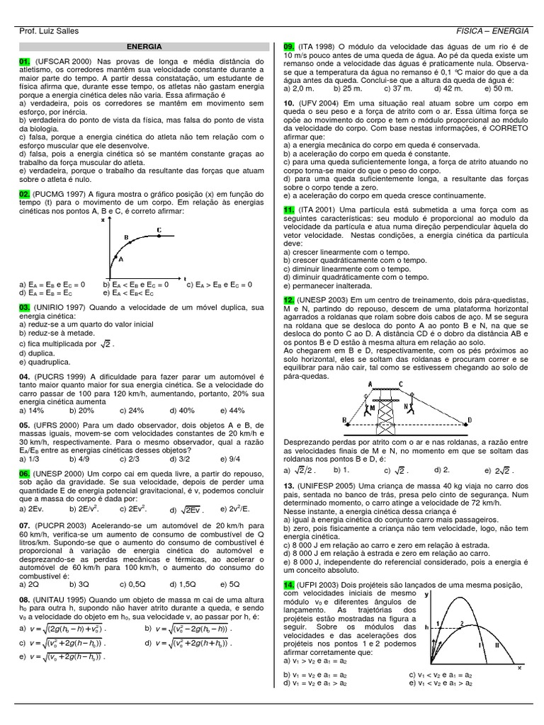 tempo (t) para o movimento de um corpo. Em relao s energias