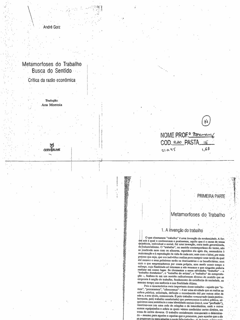 notadamcnte nas obras de Jean-Pieae Vemant, o trabalbo nccessrio satisfao das necessidades vitais era, na AntigUidade, uma ocnpallo servil,