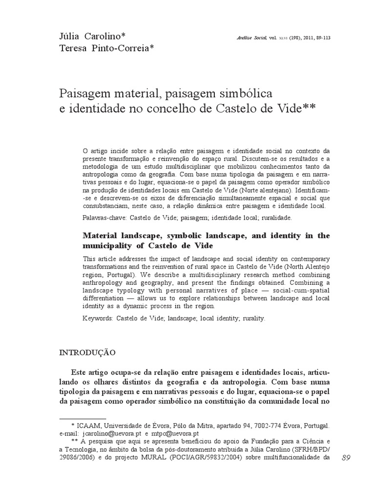 O artigo incide sobre a relao entre paisagem e identidade social no contexto da
