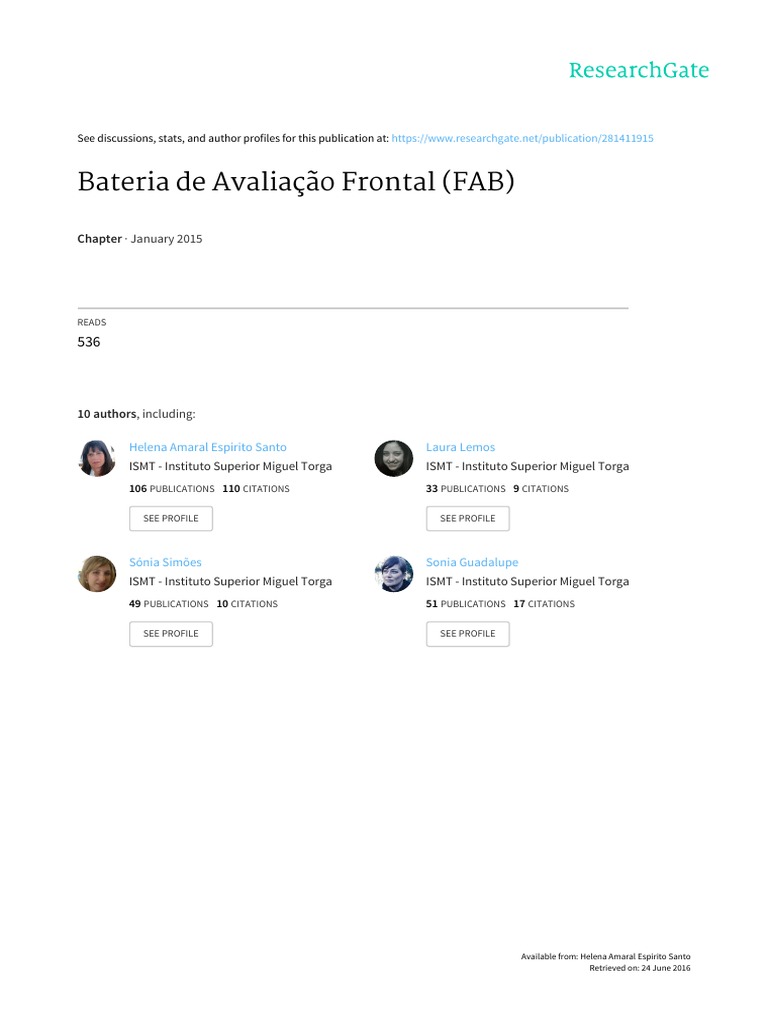 Não foram reportadas dificuldades na compreensão da FAB, nem pelos idosos saudáveis, nem pelos doentes (institucionalizados e não institucionalizados). Esta é uma medida que pode ser relevante na avaliação breve das funções executivas. As pontuações na FAB, tal como as funções que mede, são influenciadas por variáveis socio- demográficas, neuropsicológicas e emocionais. Pesquisas recentes com doentes com demência de Alzheimer têm identificado défice executivo em fases iniciais da doença (Yamao et ai., 2011). Assim, enquanto teste de rastreio, a FAB deve ser perspetivada como o primeiro passo no exame do funcionamento executivo. A avaliação da presença da DE