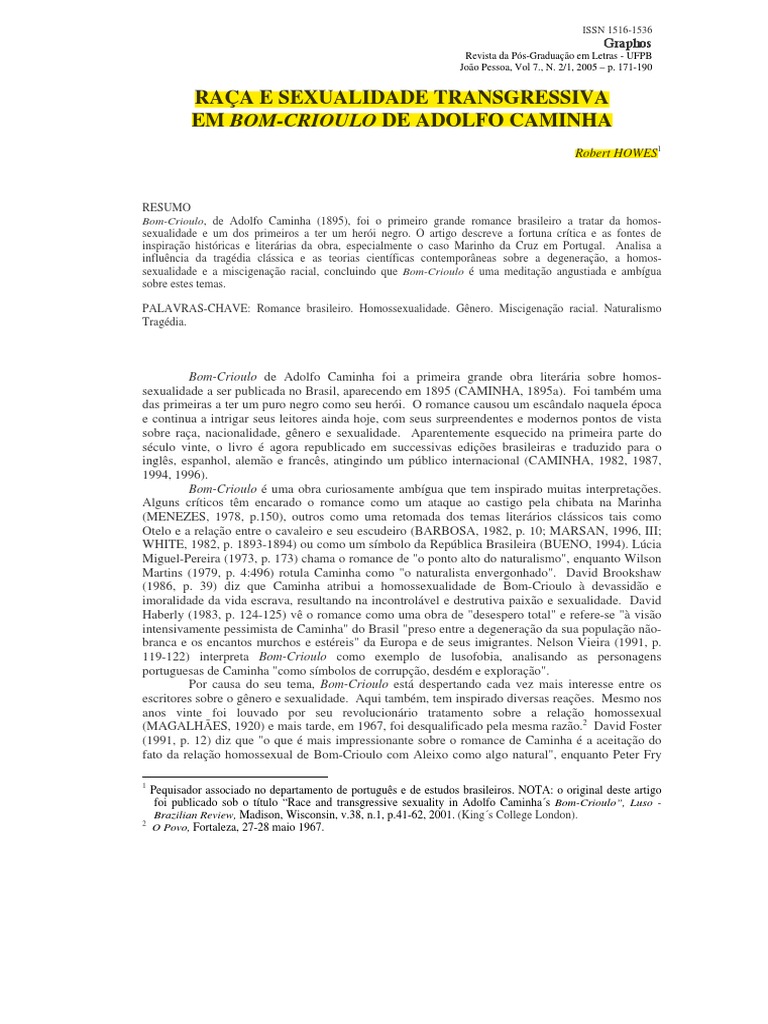 foi publicado sob o ttulo Race and transgressive sexuality in Adolfo Caminhas Bom-Crioulo, Luso Brazilian Review, Madison, Wisconsin, v.38, n.1, p.41-62, 2001. (Kings College London).