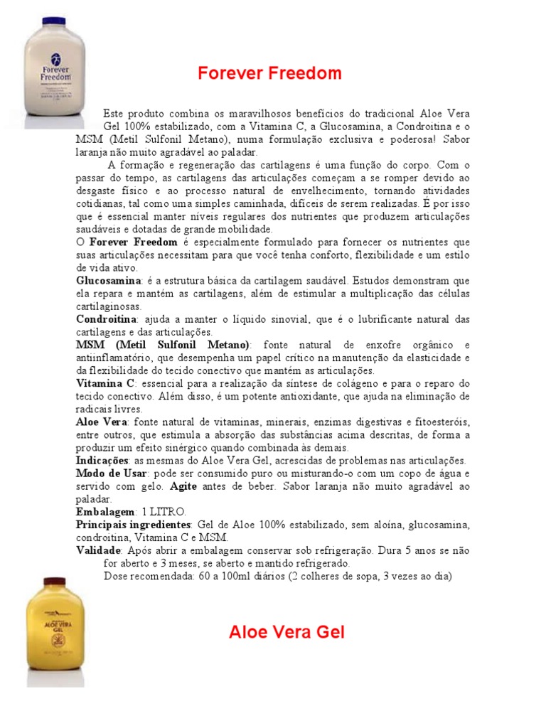 Indicações: as mesmas do Aloe Vera Gel, acrescidas de problemas nas articulações.
