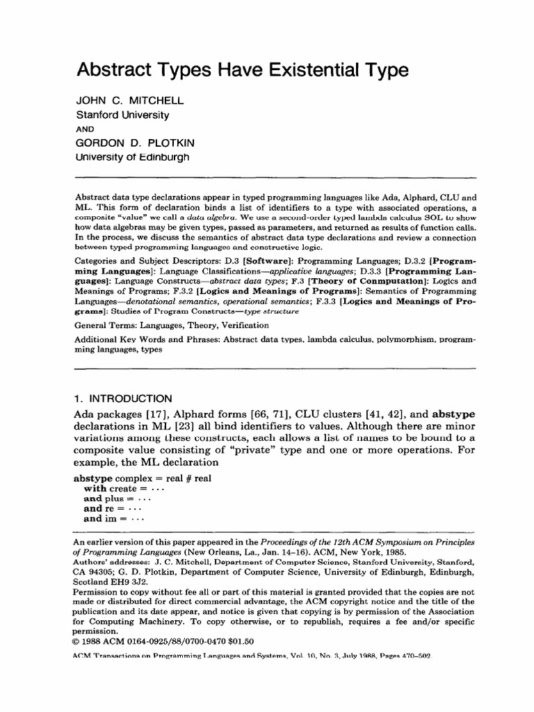 REYNOLDS, J. C. Sept. 1983). 64. Types, abstraction, and parametric polymorphism. |