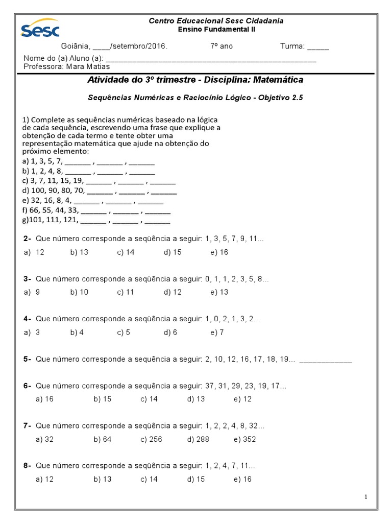 5- Que nmero corresponde a sequncia a seguir: 2, 10, 12, 16, 17, 18, 19... ____________