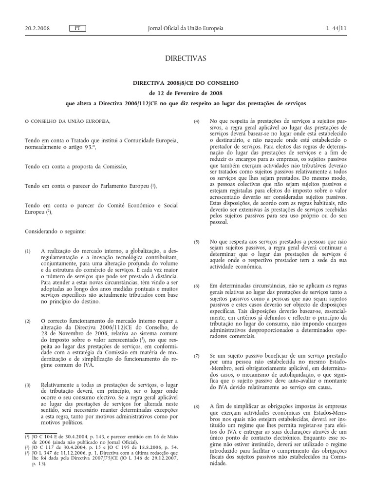 DIRECTIVA 2008/8/CE DO CONSELHO