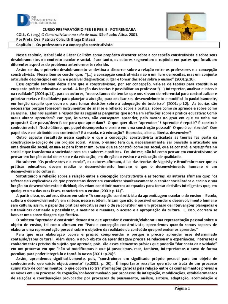 construtivista, assume que na escola os alunos aprendem e se desenvolvem na medida em que podem construir