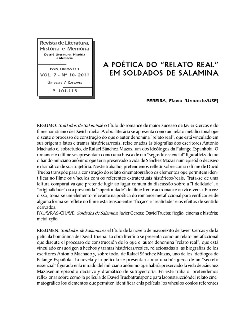 PALABRAS-CLAVE: Soldados de Salamina; Javier Cercas; David Trueba; ficcin, cine e historia;